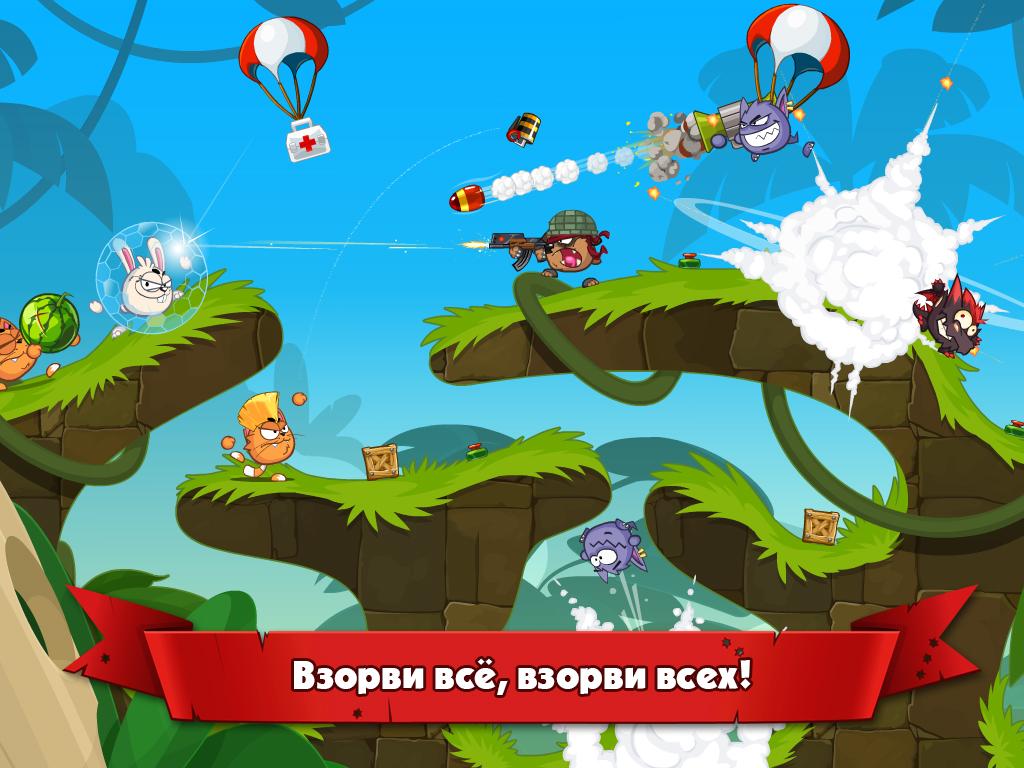 А какое разнообразие персонажей! Червяки-боксеры, демоны, зайцы, зомби и множество других червяков готовы приступить к делу. Осталось только выбрать подходящее оружия в Wormix, а тут его просто в избытке: пушки, бомбы, ловушки, пулеметы, огнеметы, пистолеты и даже реактивные ранцы. Создайте своего уникального героя и станьте победителем!