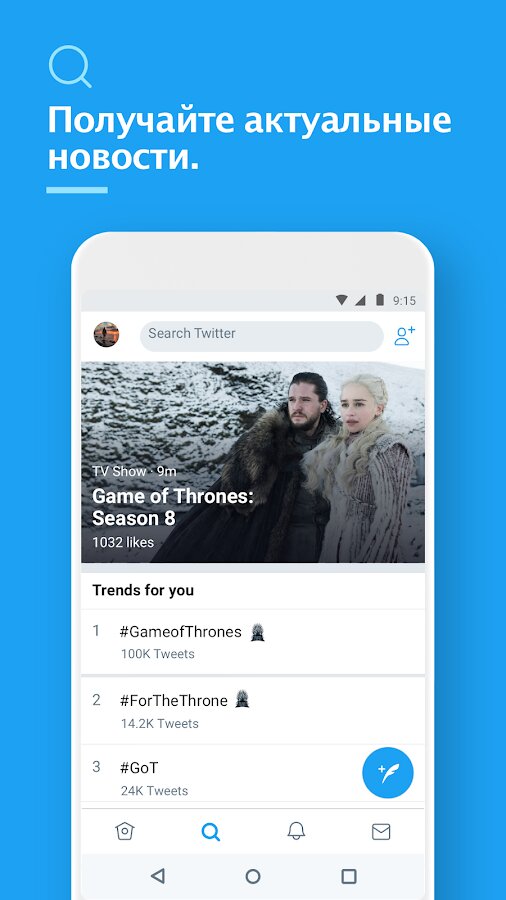 Twitter — это официальное мобильное приложение для популярной социальной сети Twitter. Оно предоставляет пользователям возможность получать мгновенные новости, следить за интересующими темами, общаться с друзьями и коллегами, делиться своими мыслями и фотографиями, а также получать уведомления о последних событиях в режиме реального времени. С помощью приложения Twitter вы можете легко и быстро подключиться к своей аудитории и оставаться в курсе всех важных событий.