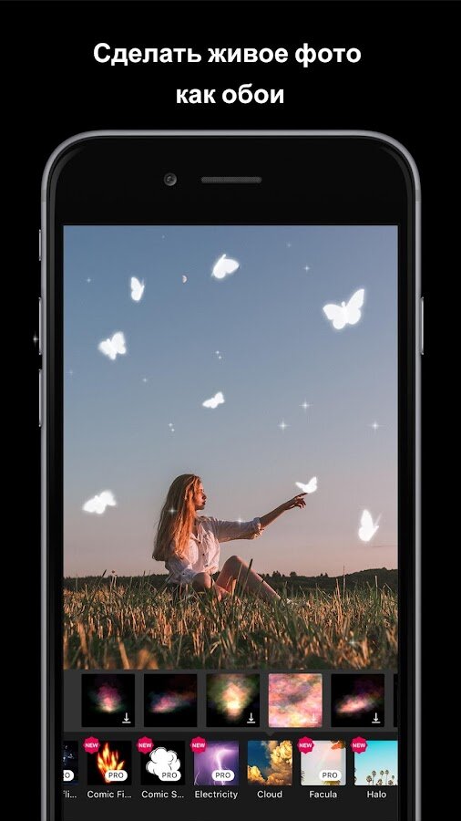 - Более 200 эффектов: Вы можете добавить цветок, бабочек и сердечные наклейки, чтобы сделать ваше фото и видео анимированным. Эффекты силы и свечения также помогут сделать ваши работы фантастическими. Наклейки супергероев дают вам возможность экспортировать огонь и управлять электричеством. Эффекты VFX добавляют волшебства в редактирование D3D-видео и 3D-фото. Попробуйте эффекты и наклейки VITA. Вы можете использовать бутфильтр и зернистые фильтры по своему усмотрению. Есть много виртуальных эффектов, таких как виртуальная зажигалка, эффект курения, эффекты света. Вас ждут еще больше естественных эффектов. Попробуйте эффект блеска, глиттера и снега. Больше живых эффектов tik tok здесь для вас. Вы также можете получить эффекты обрезания шапки, эффекты Vfx фото и дупай. Легко превратите свое изображение в живую фотографию.