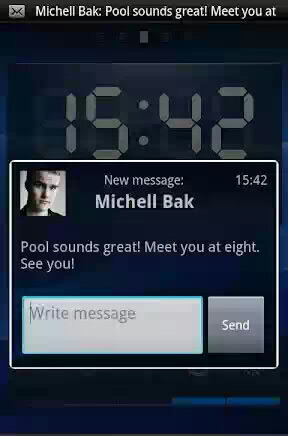 Вы сможете прочитать сообщение и сразу же ответить на него в всплывающем окне. Недостатки: — Смайлики не отображаются в виде картинок; — Показывает только одно сообщение в то время если вы получаете несколько одновременно; — Нет LED / звуковых оповещений о входящих сообщениях, только вибрация.
