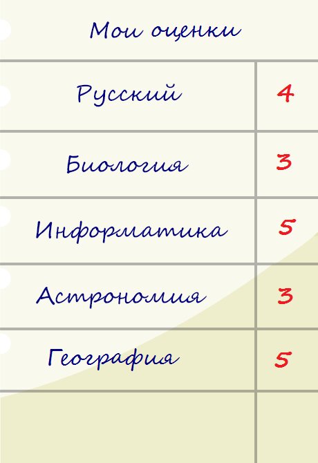 В конце игры Вы увидите свои оценки в дневнике.