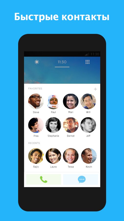 - Избранная группа контактов. Достаточно провести пальцем по экрану, чтобы связаться с нужными людьми.