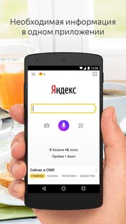 Основные возможности широки: свежие новости, погода, курс валют, пробки, ближайшие организации и многое другое на одной странице. Решайте свои повседневные задачи с поиском Яндекса, а самое важное добавьте в виджет на главном экране. Спрашивайте Яндекс на ходу: в приложении работает голосовой поиск. А при наборе с клавиатуры помогают поисковые подсказки.