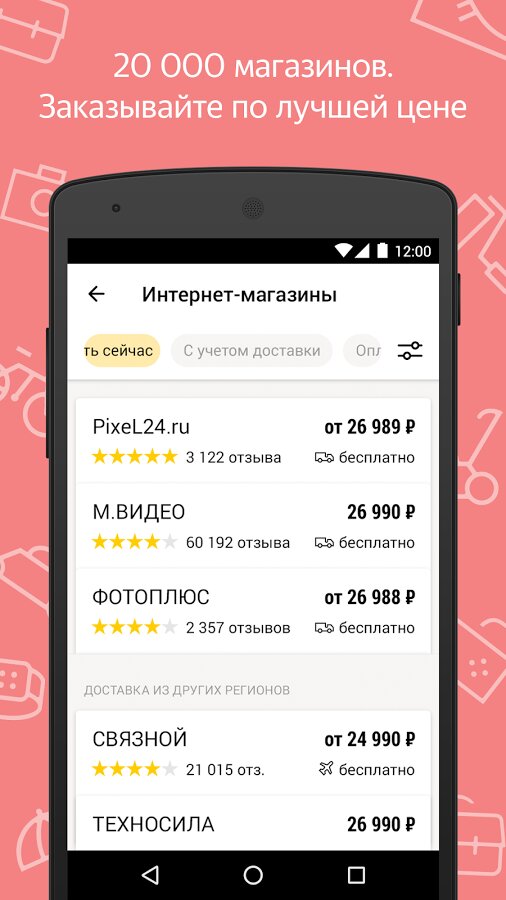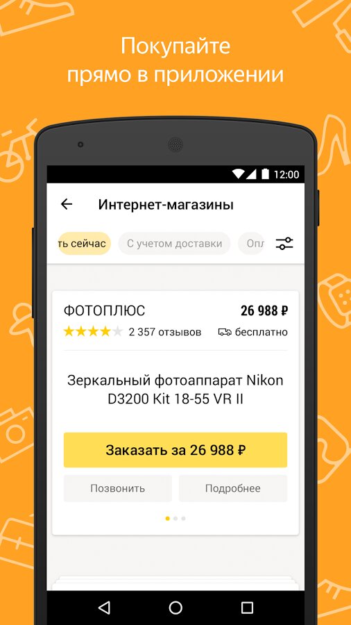Яндекс.Цены (Маркет) — при помощи этого приложения вы получите доступ к огромной базе товаров от ведущего российского поисковика. Вы сможете прочитать описание, уточнить технические характеристики товара, сравнить цены, прочитать отзывы пользователей. При чем отзывы можно прочитать как о товаре, так и об отдельном магазине. Для поиска товара можно ввести его название или просто отсканировать штрихкод при помощи встроенной камеры смартфона. Когда вы определитесь с покупкой и магазином, вы сможете непосредственно из приложения позвонить в магазин или перейти на его сайт для оформления заказа.