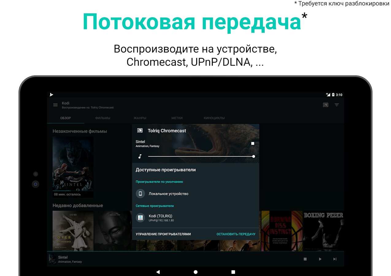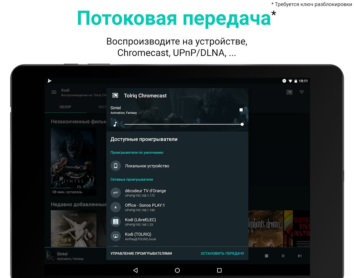- Потоковая передача медиа Kodi, Plex и Emby на устройство Андроид, UPnP, AirPlay, Chromecast, Roku и Smart TV*