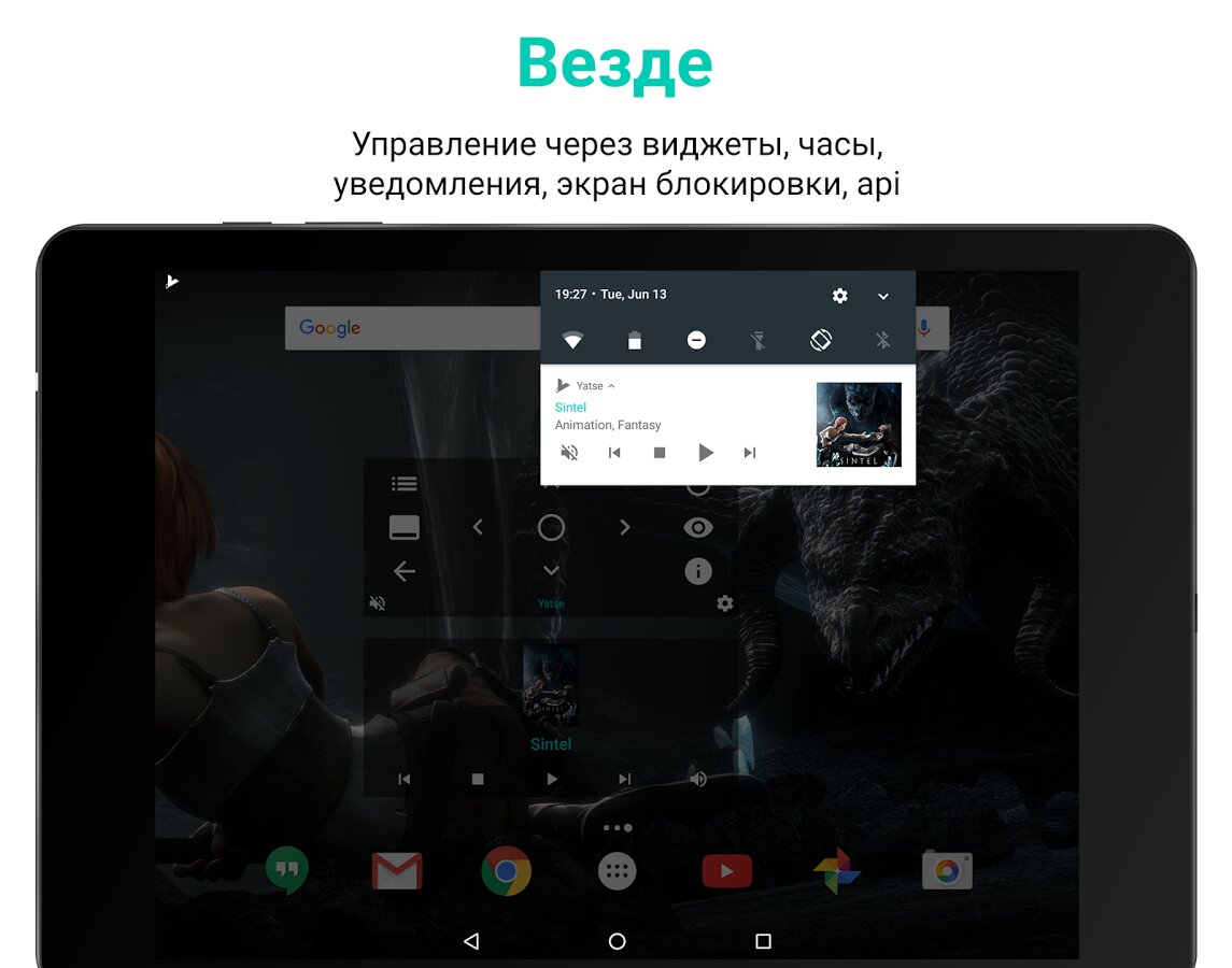 - Виджеты для быстрого доступа к управлению, подробностям воспроизведения и др.