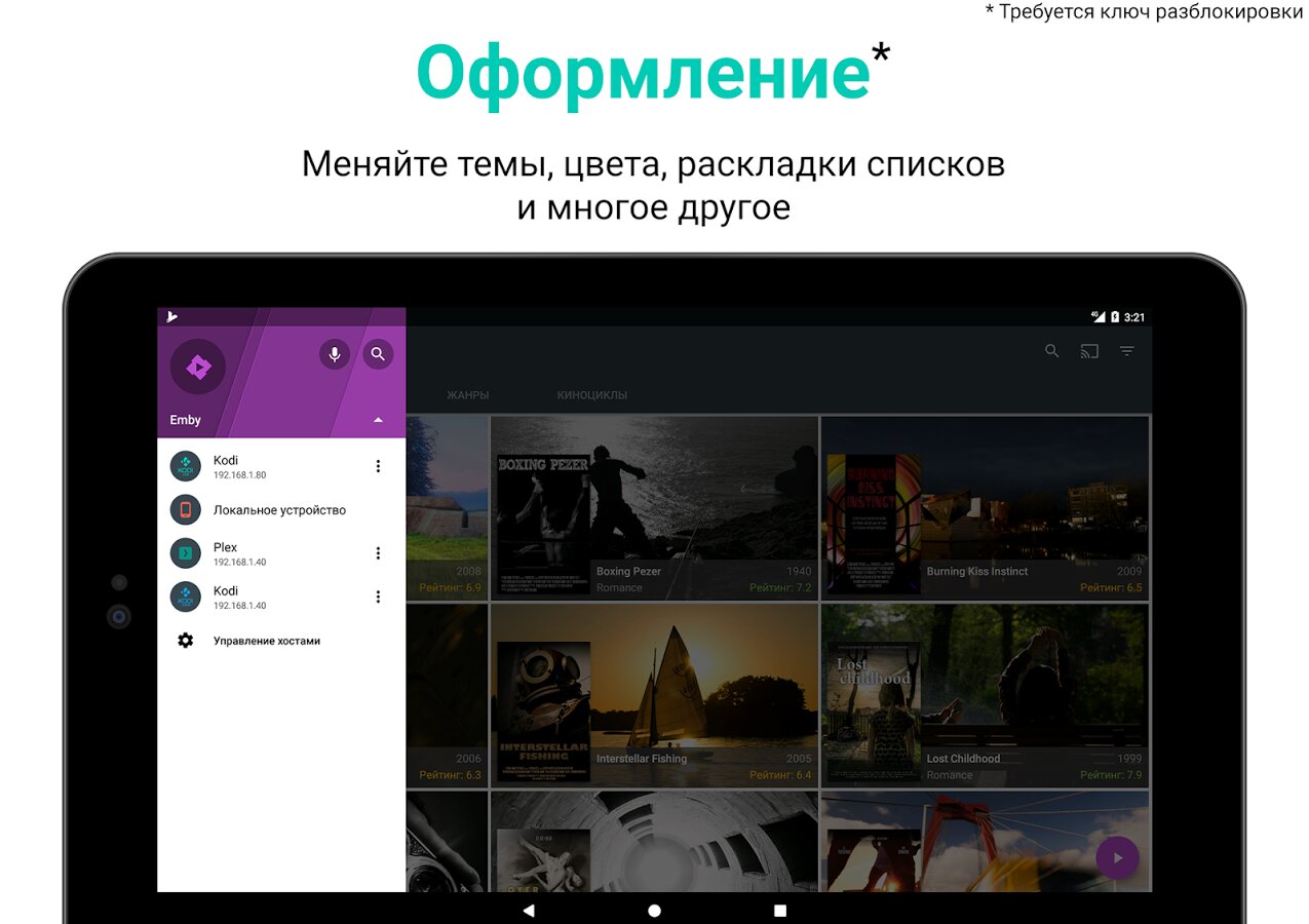 - Поддержка серверов Plex™ и Emby™ *