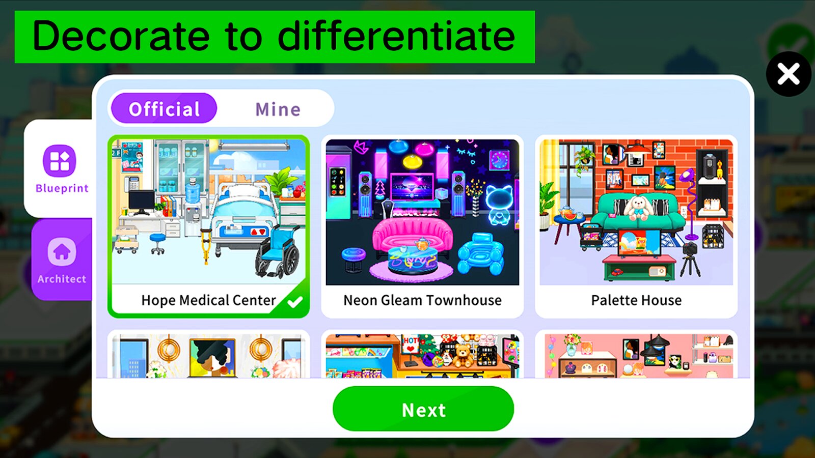 YoYa Time: Build,Share&Play — это творческая песочница, где вы можете создавать собственных персонажей и строить уникальные дома в красочном мультяшном мире. Игра приглашает вас воплотить в жизнь любые фантазии — от создания сказочных замков до космических станций, позволяя раскрыть весь потенциал вашего воображения.