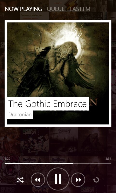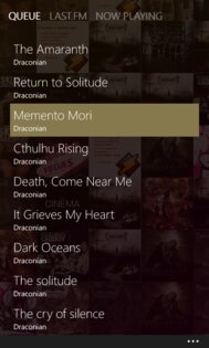 Управление приложением осуществляется с помощью привычных всем пользователям WP вкладок интерфейса данной системы, а также присутствует управление жестами. К примеру, протянув справа налево вы можете из любого окна приложения перейти на окно воспроизведения, что очень удобно. Это окно разбито на три вкладки: первой является вышеупомянутое окно воспроизведения, вторая вкладка — список воспроизведения, а третья предоставляет информацию об исполнителе, источником которой есть сайт lastfm.ru Стоит также отметить, что Zbox автоматически загружает обложки альбомов и изображения исполнителей из всемирной паутины.