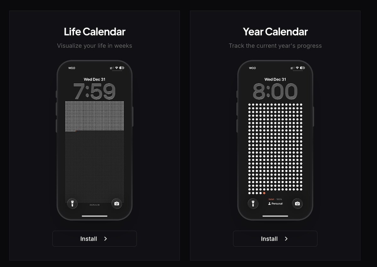 - Life Calendar — визуализирует прожитые годы в неделях.