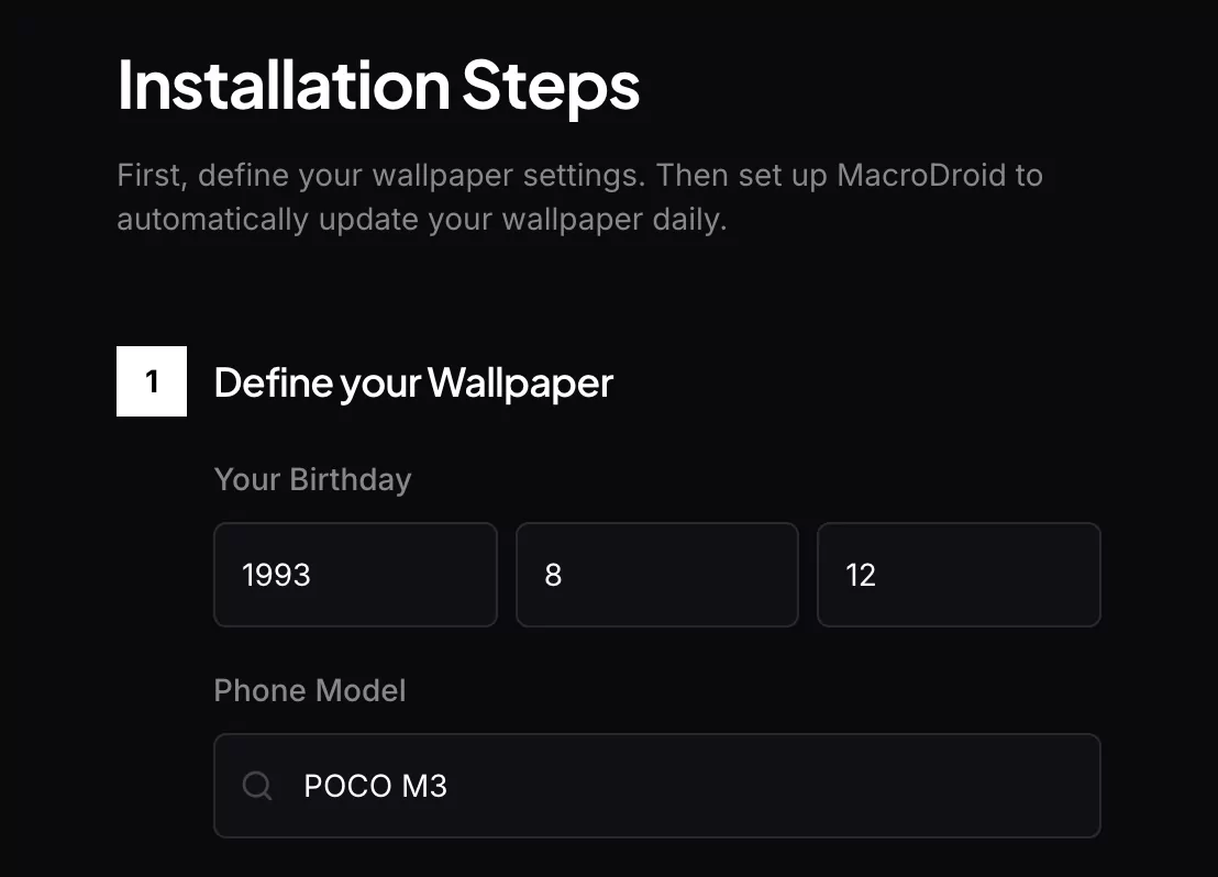 - В открывшемся окне введите дату рождения и выберите модель смартфона.