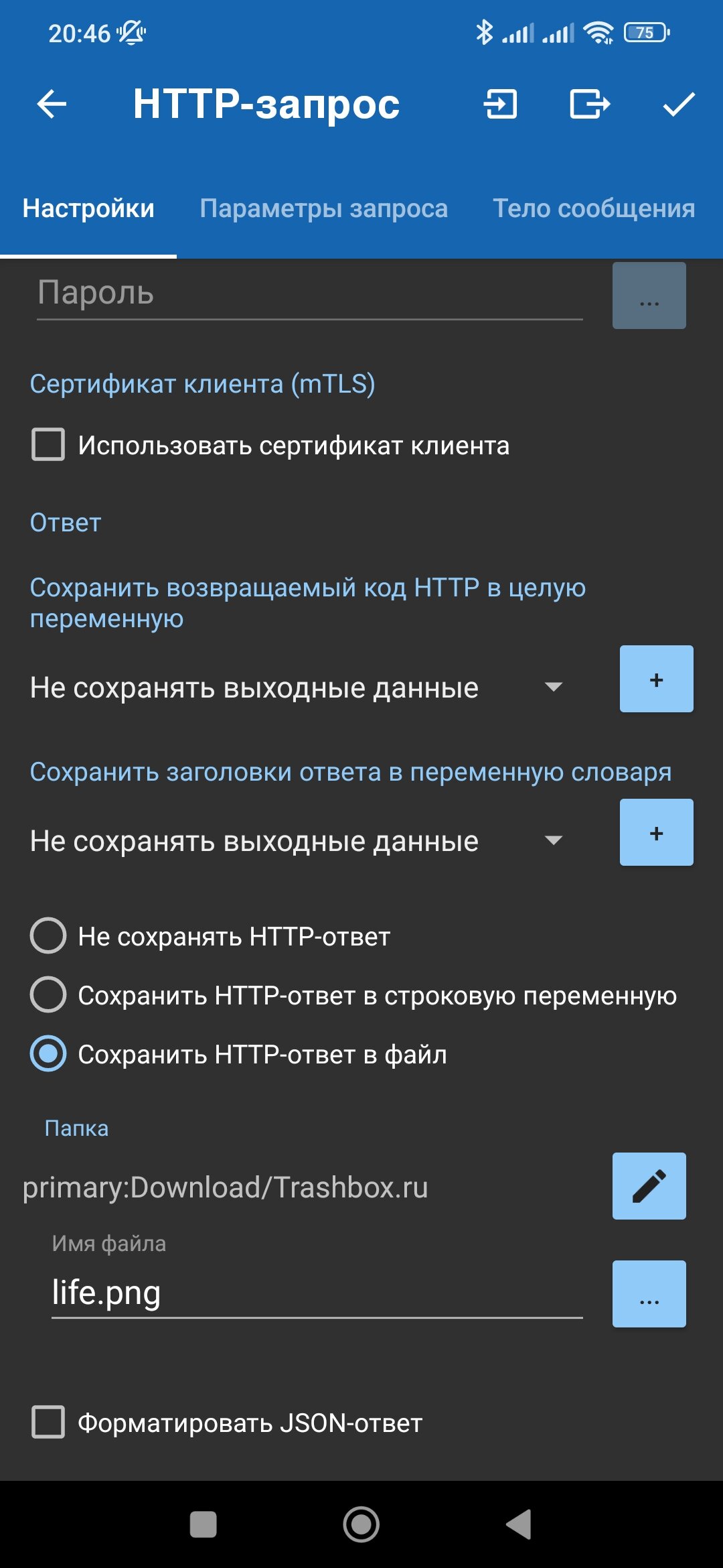 - Пролистайте вниз страницы и выберите пункт «Сохранить HTTP-ответ в файл» → выберите папку «Download» и создайте новую папку с любым названием.