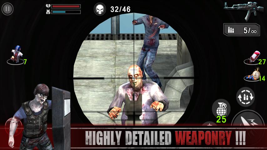 Zombie Assault: Sniper отличный 3D экшн для андроид похожая на популярную игру Dead Trigger. Вирус распространился как лесной пожар по всему городу, обычные люди превратились в зомби и готовы убить все живое. Те, кому посчастливилось выжить бежали на склады, супермаркеты и другие места в надежде, что их найдут и спасут. Погрузитесь в игру от 1 лица с потрясающей графикой, отличной музыкой и очень реалистичными звуками. Игра содержит больше 16 видов оружия на ваш выбор, среди которого арбалет, винтовка Драгунова, P90, Katana и много других, каждое из которого имеет свою уникальность.