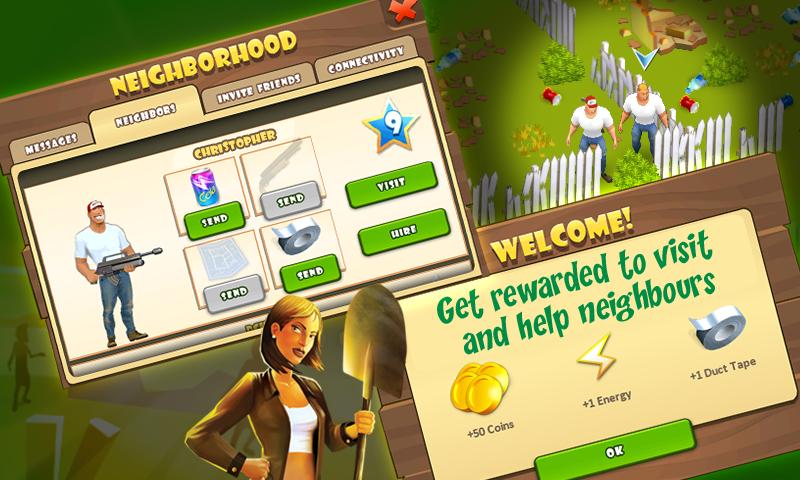 (Пожалуйста, отметьте, что Зомби Лейн для Андроида не синхронизирует с версией Facebook* и является автономной игрой.)