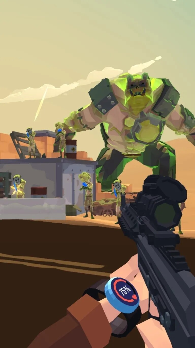 - Простое управление с прицеливанием касанием и автоматической стрельбой