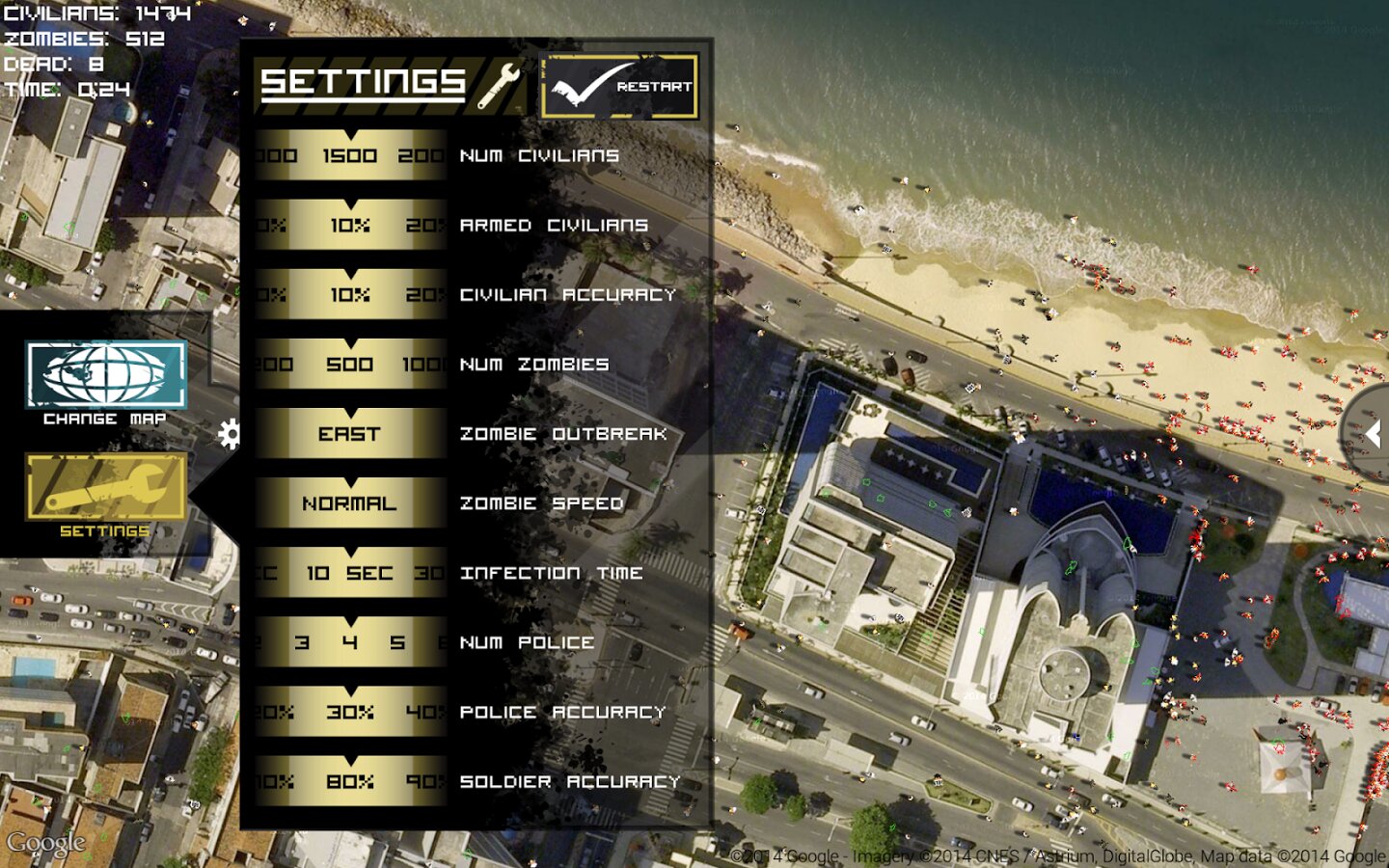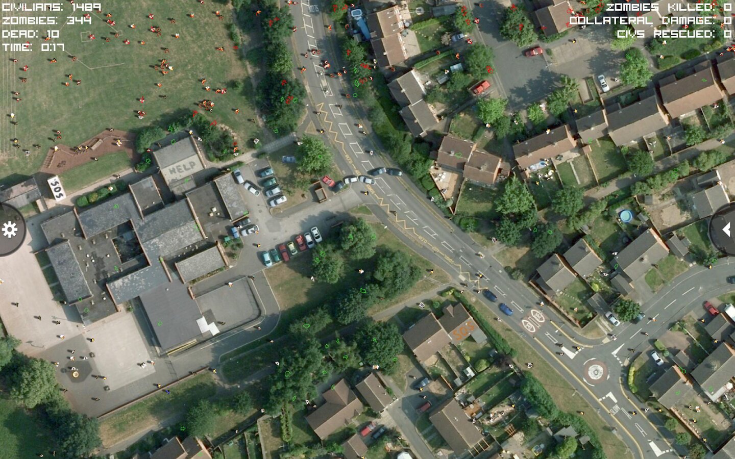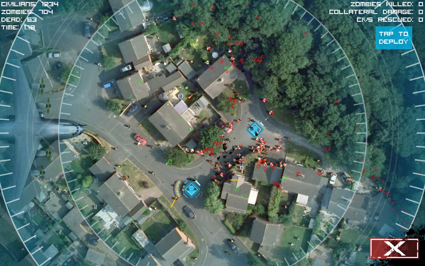 В наше распоряжение попадает десять бравых солдат, 20 мощных ракет и 10 вертолетов для эвакуации населения. С одной стороны карты начинают надвигаться красные зомбаки. Они быстро пробегают поля, озера и реки, чтобы добраться до своей еды – людишек. Наша задача – использовать предоставленные средства для остановки врагов и эвакуации населения.