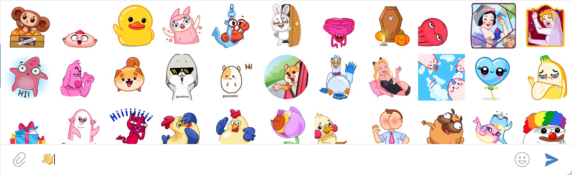 Это обычная функция Телеграма — смайлики эмоджи предлагаются при написании ключевых слов, а затем уже стикеры предлагаются при написании ключевых смайликов