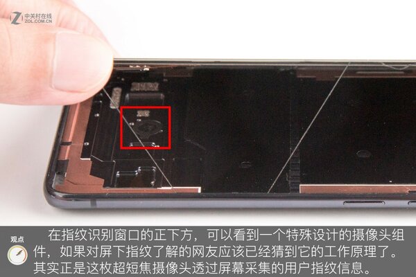 Если вы хотя бы раз в жизни разбирали телефон с «датчиком в дисплее», то вы увидели бы что в дисплее есть отверстие в слое стекла-основы, поэтому там находится незащищенная часть матрицы. Так как OLED имеет сверхтонкую матрицу, то сканер просто «пробивает» сквозь нее и считывает палец.