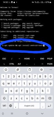 2. В термуксе устанавливаем инструменты для отладки командой: apt update && apt install android-tools После установки сворачиваем термукс