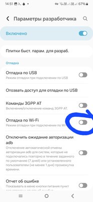 3. В настройках в параметрах разработчика ищем отладку по вайфай, включаем ползунок (в этот момент телефон должен быть подключен к вайфай), подтверждаем предупреждение, затем заходим внутрь этого пункта отладка по вайфай и сворачиваем его