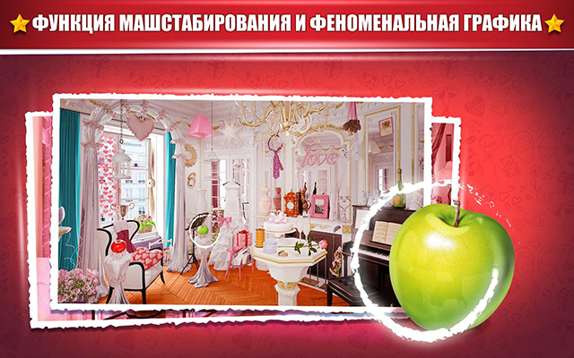 Вы будете поражены красивой графикой и интересным геймплеем! Отищите спрятанные предметы! Игры головоломки отличные для детей, но и для взрослых! Поделитесь нежние чувства с любимым, играя поиск предметов. Бесплатное любовное приложение только для вас. Наслаждайтесь!