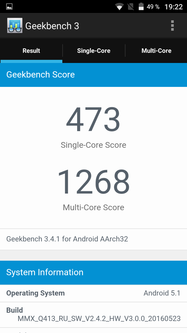 В смартфоне установлена, как написано в инструкции: «Новая операционная система линейки Android с отзывчивым и понятным интерфейсом» — Android 5.1 Lollipop. Никаких изменений, кроме функции настройки экрана Miravision в оболочке не наблюдается. Обновиться до более новой версии нельзя.