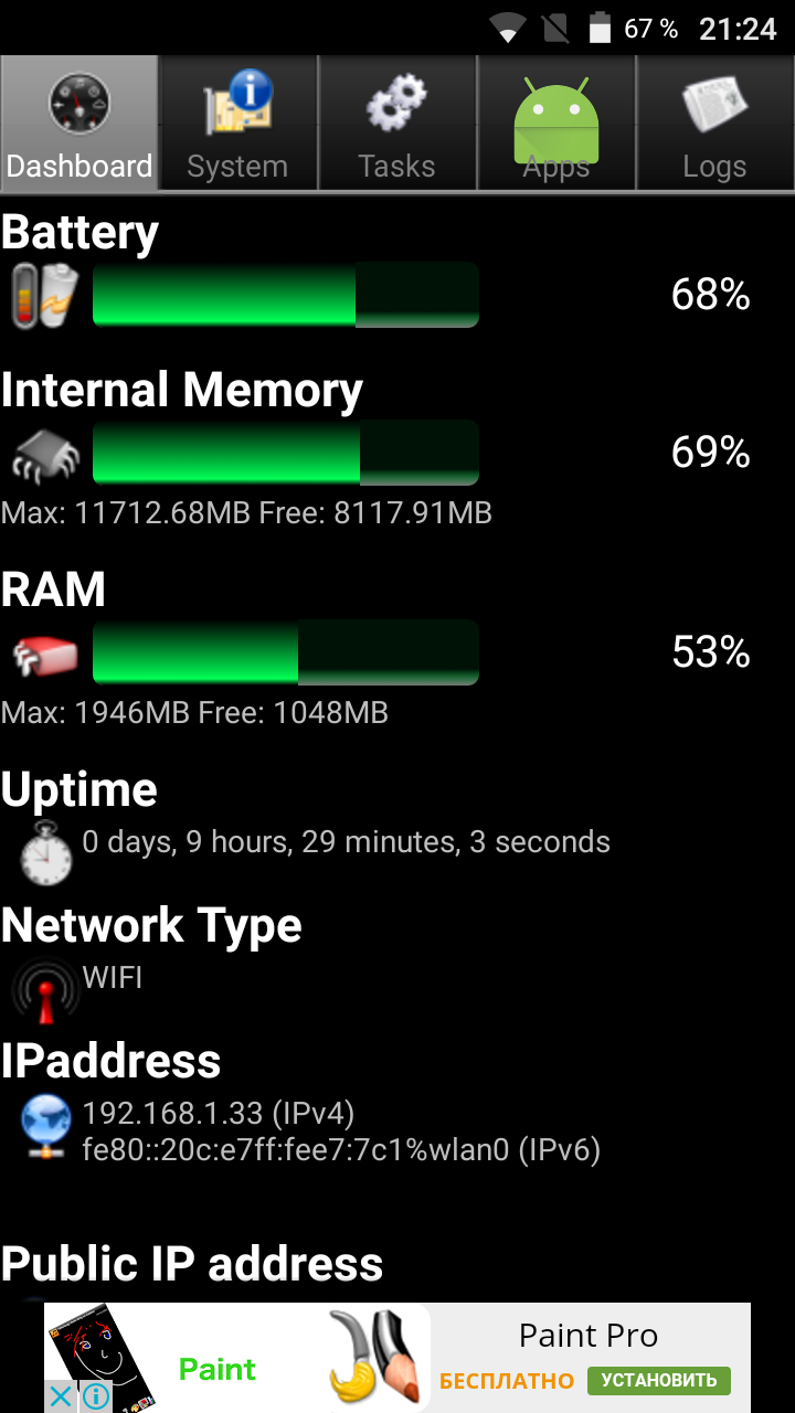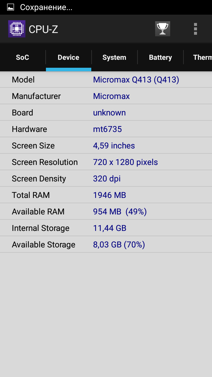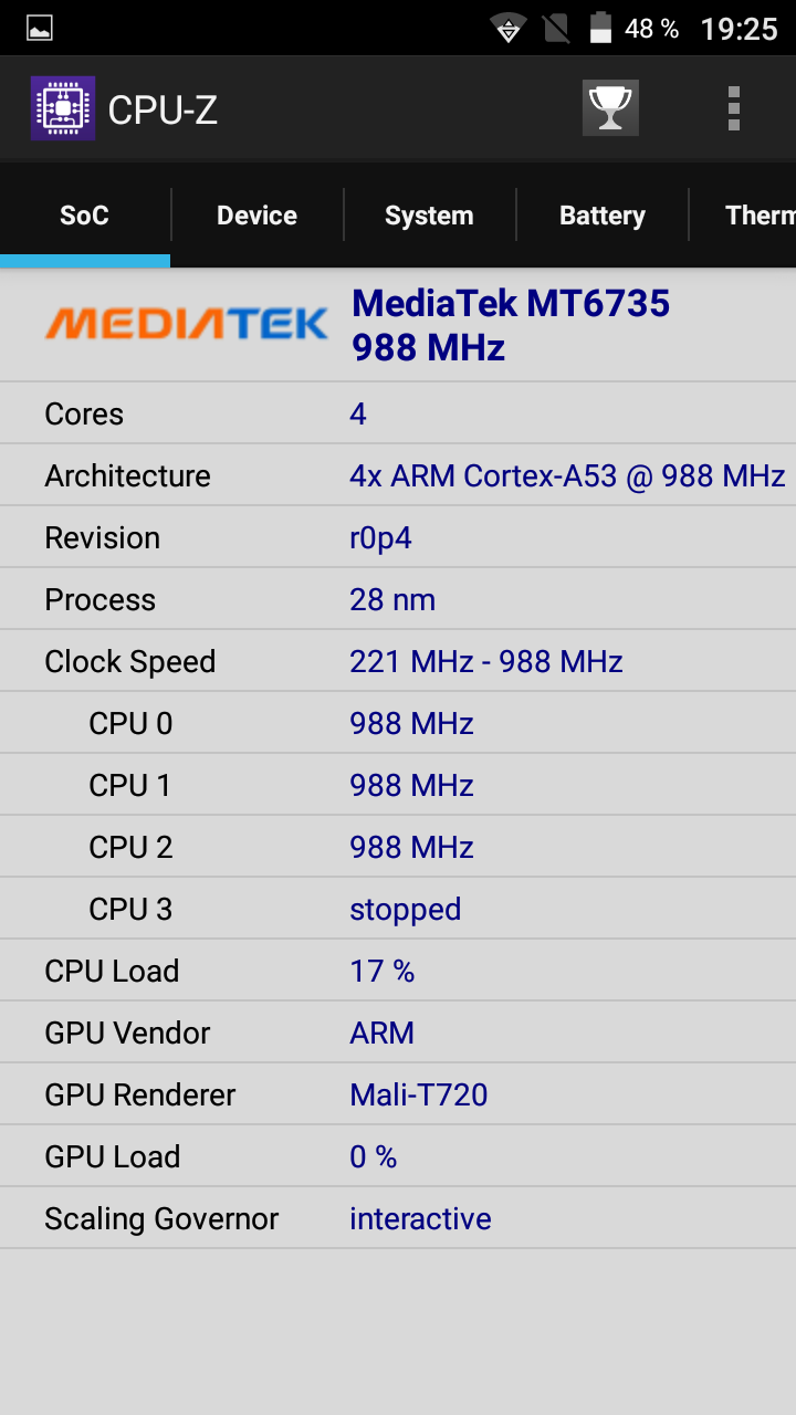 - Процессор: MediaTek MT6735Р, Cortex-A53, 4 x 1 ГГц;