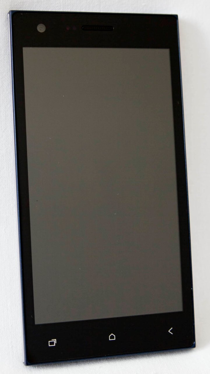 На лицевой стороне телефона, выше экрана, находятся фронтальная камера, датчик освещения, разговорный динамик. Внизу – сенсорные кнопки «меню», «домой», «назад».