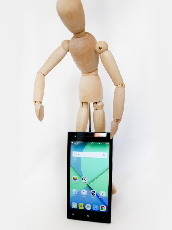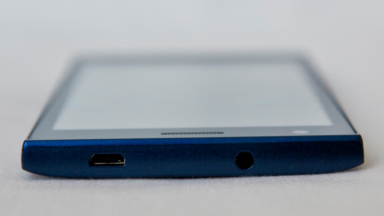 На верхней грани расположены разъемы 3,5 мм и micro-USB, что не очень удобно при пользовании телефоном во время зарядки.
