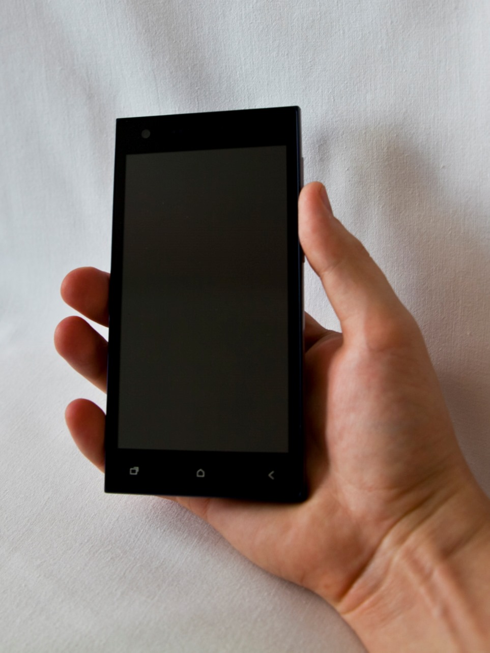Нетрудно догадаться, что данный смартфон сконструирован по дизайну индийской компании. В Индии, как известно, организовано правостороннее движение, и создается впечатление, что там привыкли делать всё «в другую сторону». Это сказалось на расположении нижних кнопок: клавиша «назад» находится справа от кнопки «домой», а клавиша «меню», соответственно, слева. Кнопки не подсвечиваются и, первое время пользователь может путаться, куда «тыкать». Хотя, с другой стороны, это довольно удобно тем, что не придется тянуться большим пальцем за постоянно использующейся кнопкой «назад», она всегда будет в буквальном смысле «под рукой», а контекстное меню, на практике, не так часто нужно вызывать.