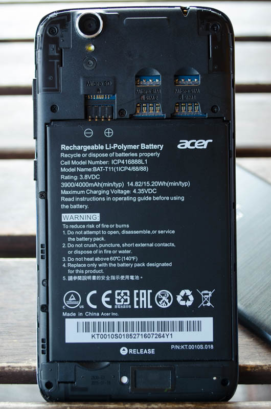 Заявленный в спецификациях объем аккумуляторной батареи ACER Liquid Z630 составляет 4000 мАч, однако проверка показала, что слепо доверять данной цифре не стоит. Реальный запас энергии Liquid Z630 указан на батарее как минимальный и 100 мАч меньше.