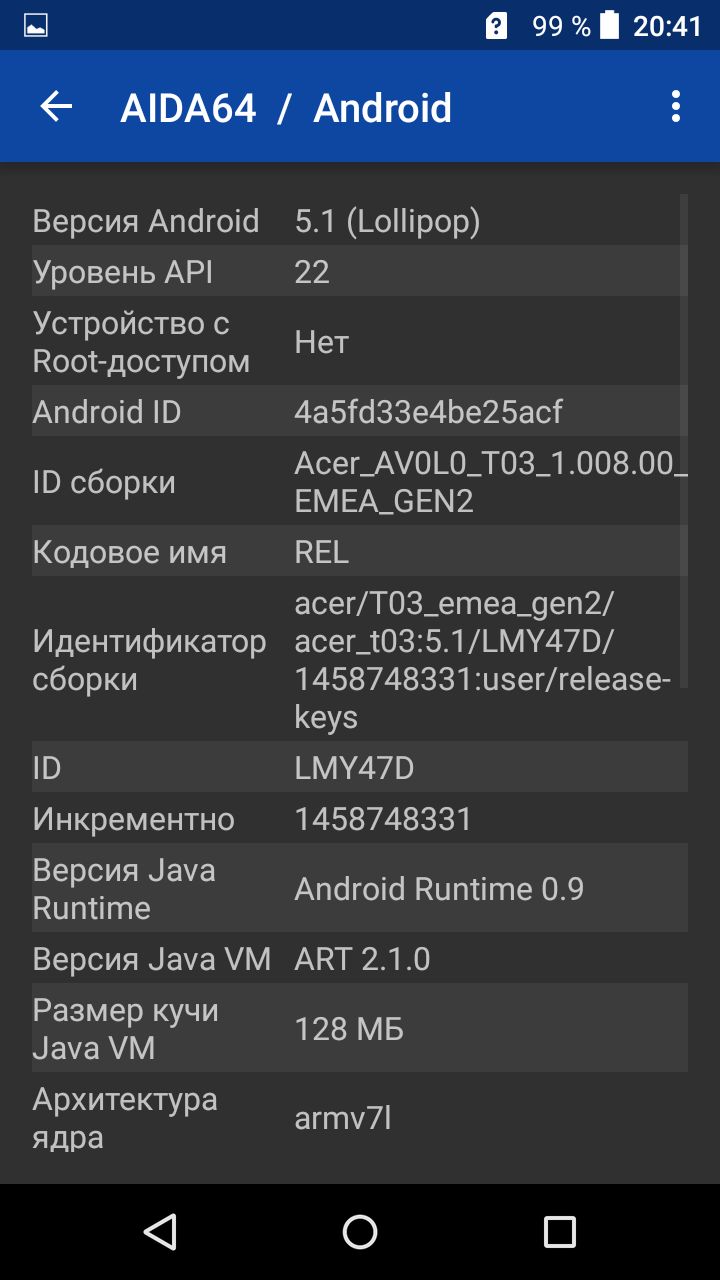 - Операционная система: Android 5.1 (Acer Liquid UI);