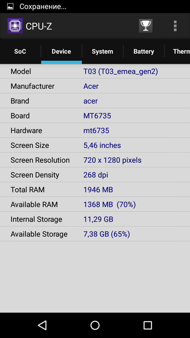 - Процессор: MediaTek MT6735, Cortex-A53, 4 x 1.3 ГГц;