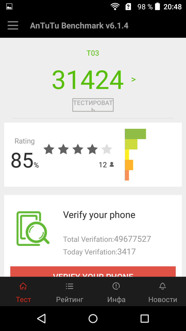 Такая конфигурация используется в самых разных устройствах и уже успела себя зарекомендовать как неплохой компромисс между стоимостью и производительностью. MT6735 справляется как синтетическими тестами, так и с подавляющим большинством реальных задач.