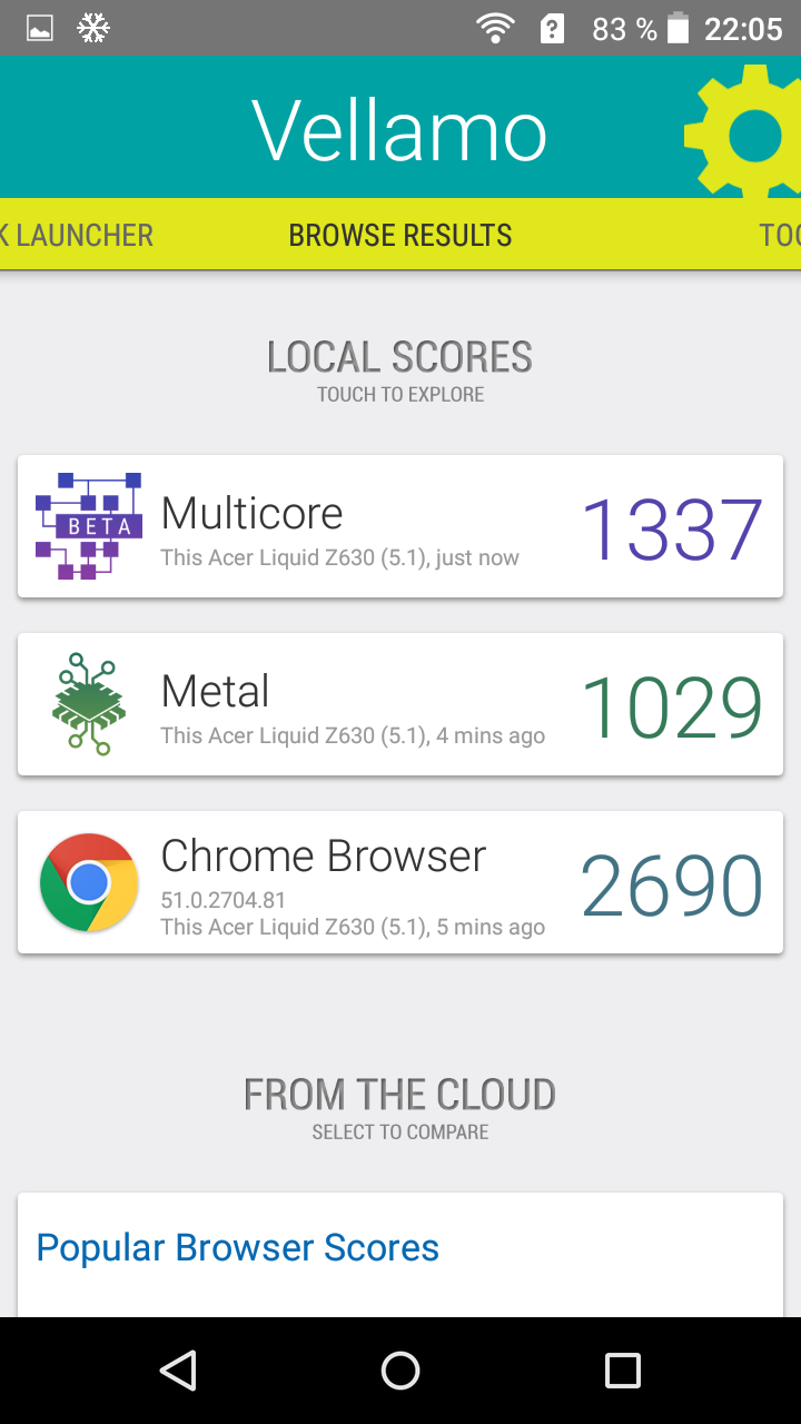 За время тестирования Liquid Z630 получил два обновления программного обеспечения. На версию Android они не повлияли (5.1), однако ОС получила обновление безопасности от апреля 2016 года и ряд мелких исправлений в фирменной оболочке носящей название Acer Liquid UI.