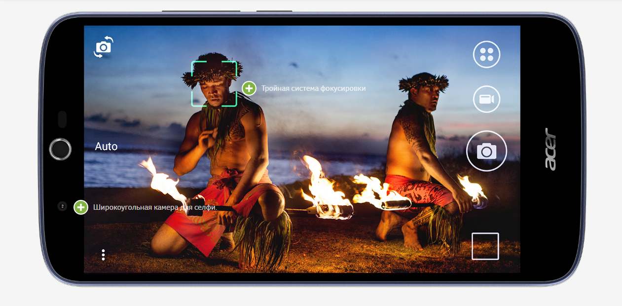 Основная камера с матрицей на 13 Мп оснащена тройным автофокусом, наиболее подходящий среди которых система автоматически выбирает в каждом случае: фазовый, лазерный или контрастный. Объектив фронтальной камеры на 5 Мп с углом съемки в 85 градусов позволяет делать широкоугольные снимки.