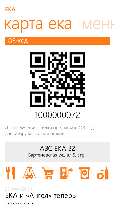 Ваш смартфон заменит дисконтную карту, достаточно поднести на кассе заправки QR-код к специальному сканеру. Данный функционал доступен как для держателей дисконтных карт ЕКА, так и для новых клиентов.
