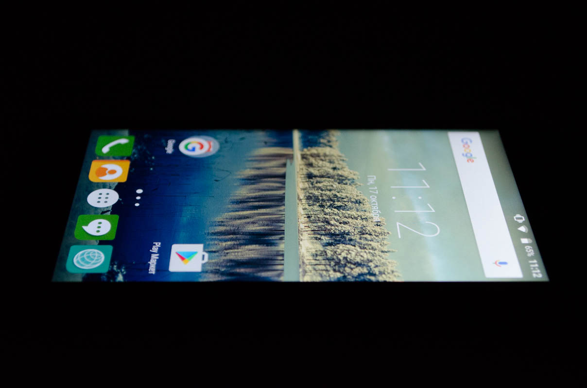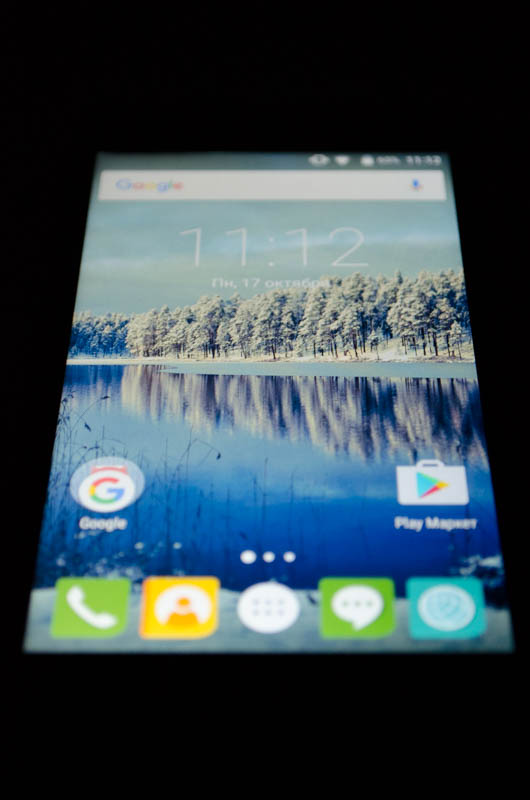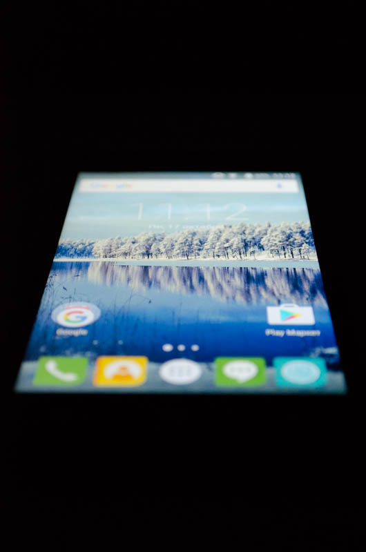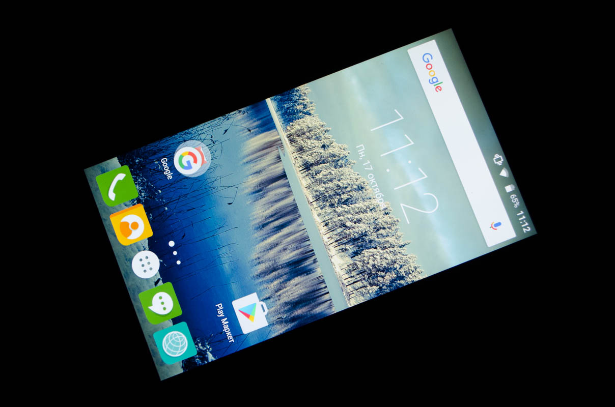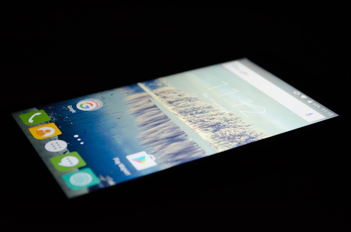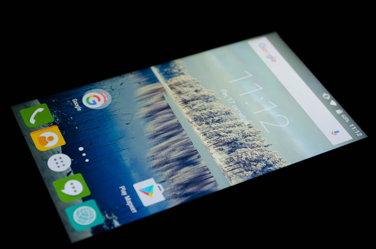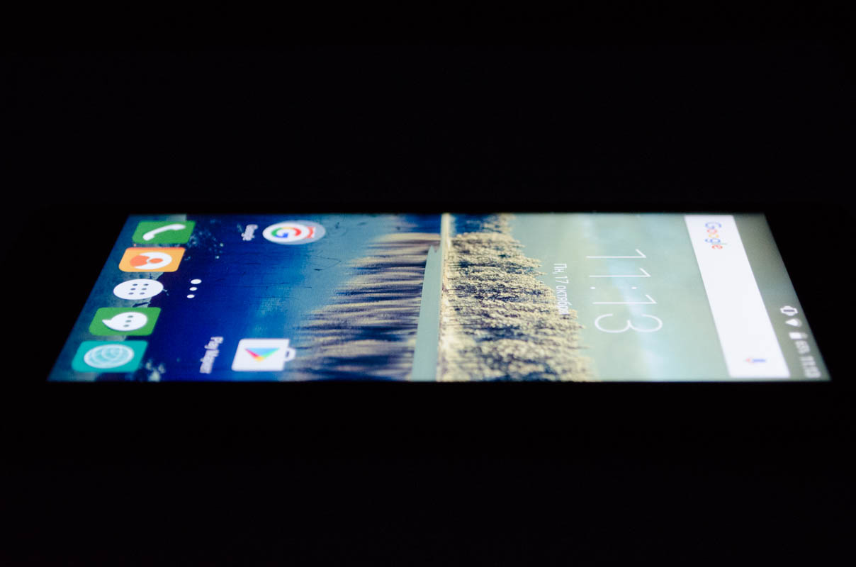 Стандартные для данной ценовой категории неприятные особенности — отсутствующее олеофобное покрытие и защитное стекло неизвестного производителя, компенсируются качеством 5-дюймового HD-экрана без воздушной прослойки. Он выполнен по технологии IPS, изображение не искажается даже при взгляде под углом. Снижение контрастности при этом слабое.