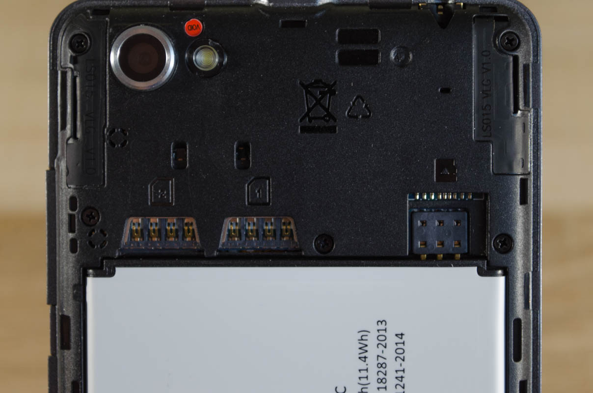 Philips S326 располагает двумя слотами Micro SIM. Горячая замена карт из-за расположения батареи невозможна. Диапазон поддерживаемых радиомодулем частот включает и 4G. Прием сигнала сотовой сети у смартфона слабоват. Если в городе этого не замечаешь, то там, где сотовых вышек не так много, возможны проблемы со слышимостью и приемом входящих звонков.