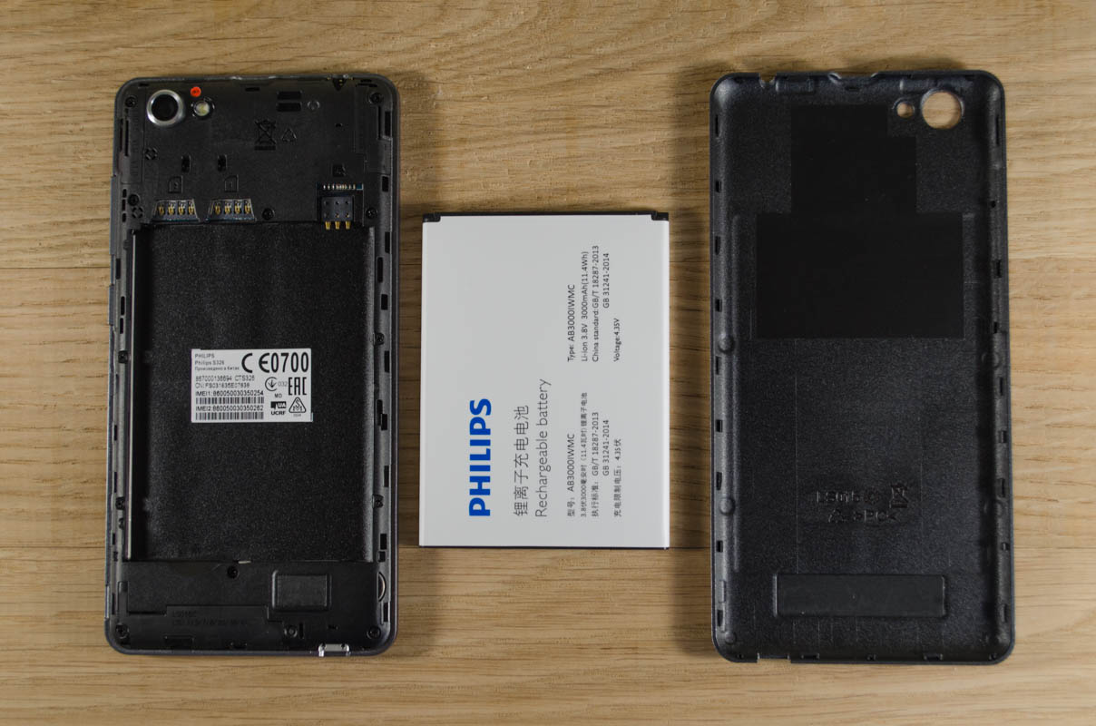 Съемная батарея Philips S326 обладает заявленной емкостью 3000 мАч. Реальный показатель, который мы получили в результате замеров, оказался на 100 мАч меньше. Аккумулятор дает достаточно энергии, чтобы смартфон проработал в тесте Трешбокса на автономность 6 часов 32 минуты. Показатель на уровне конкурентов, но не рекордный. На зарядку смартфона требуется 3 часа 50 минут. А что вы ожидали от слабенького комплектного адаптера на 5V, 1A?