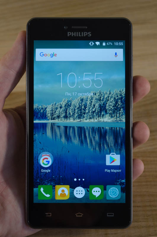 Непримечателен. Каких либо оригинальных дизайнерских решений в обзоре Philips S326 вы не увидите. Сенсорные кнопки (без подсветки) на передней панели смартфона, как и весь экстерьер моноблока, отсылают во времена четвертой версии Android. К счастью, другие элементы корпуса соответствуют выработанным индустрией современным стандартам. Чуть выступающий кант защищает стекло экрана от механических повреждений. Рядом с разговорным динамиком расположена фронтальная камера, а также спрятаны датчики приближения и освещения.