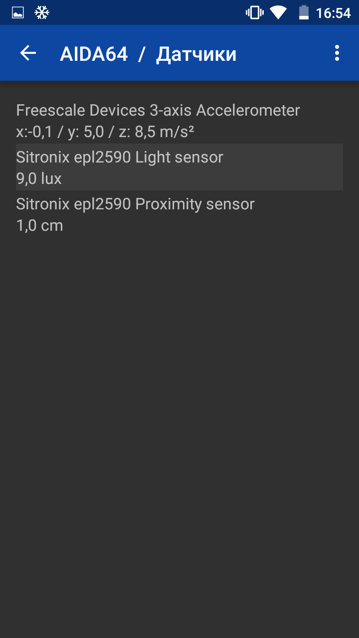 - Датчики: освещённости, приближения, акселерометр;