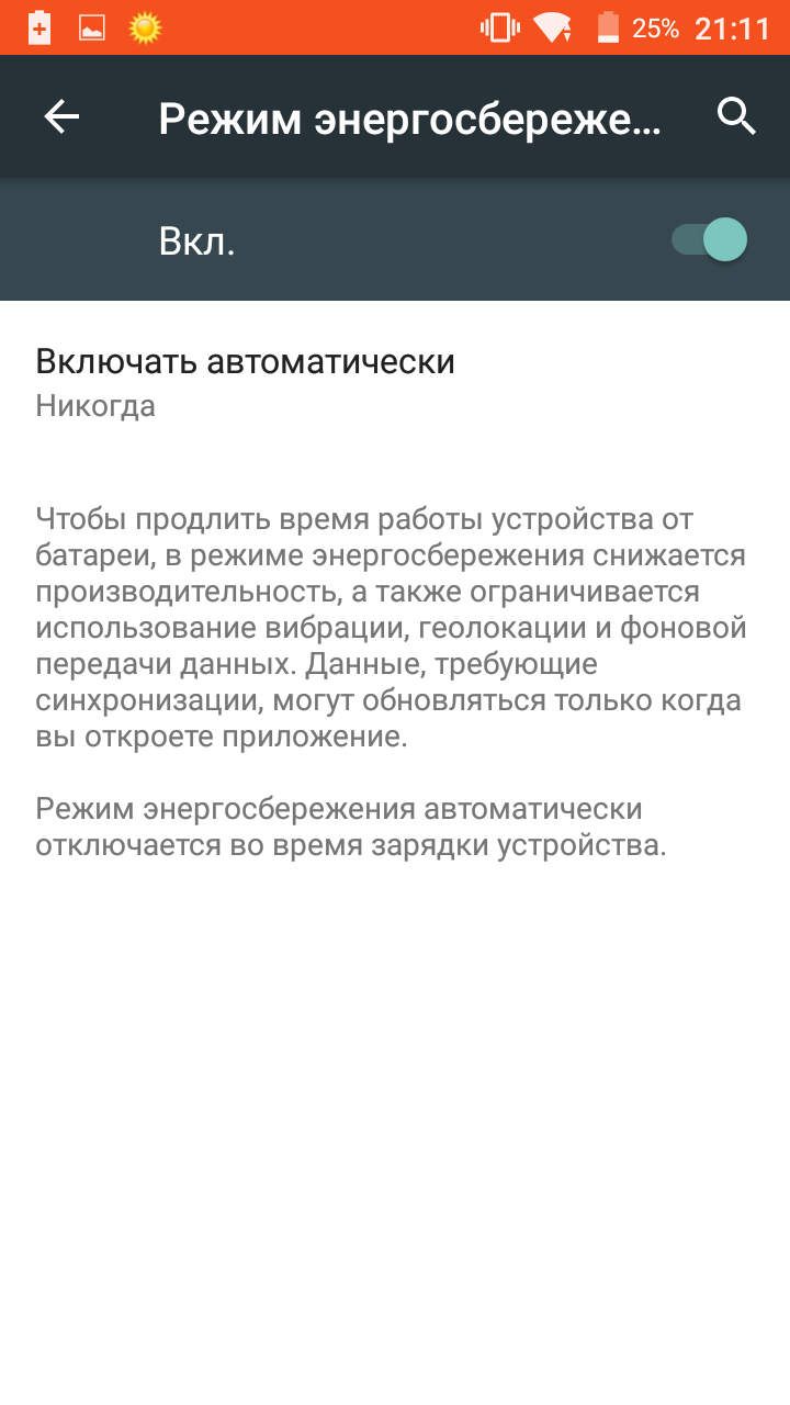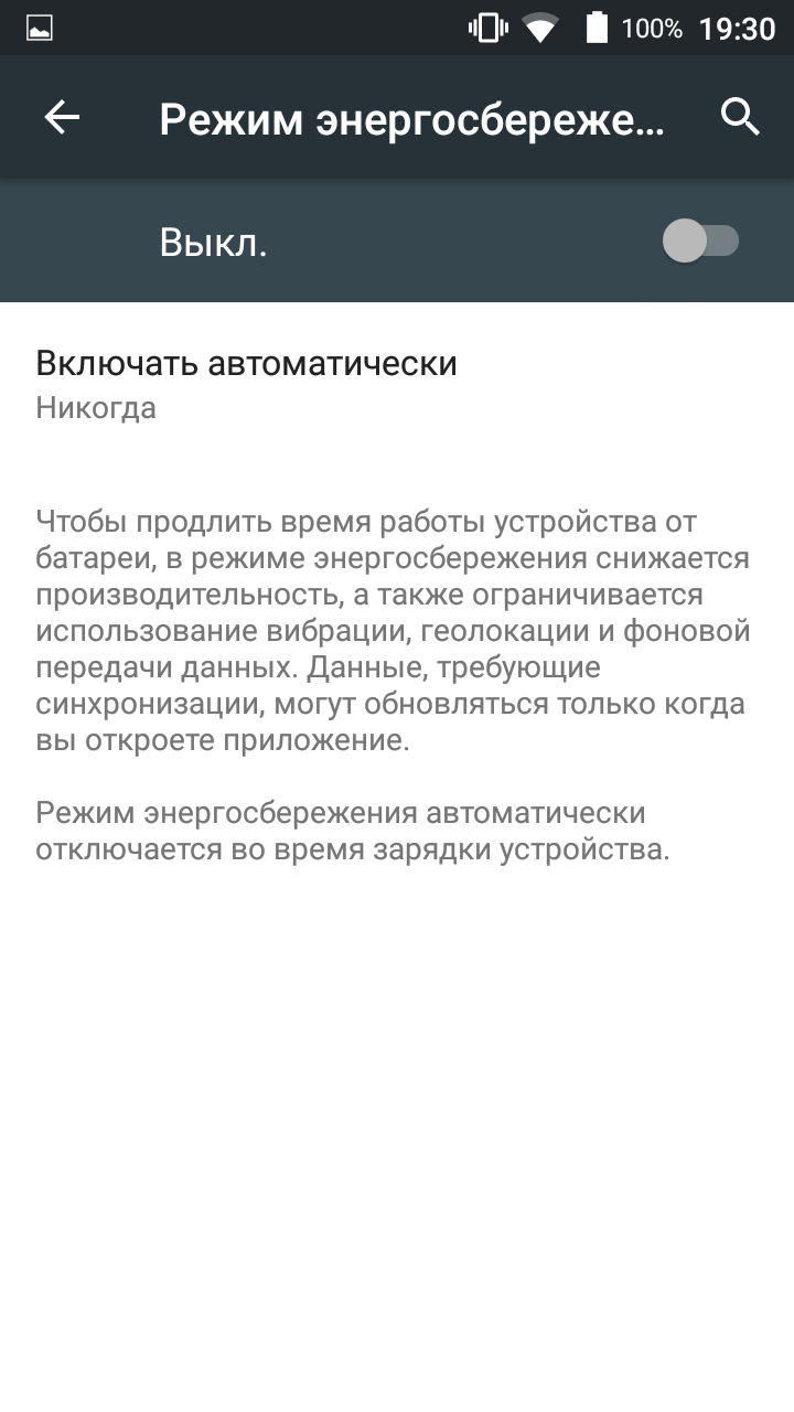 Сэкономить энергию можно при помощи стандартного для Android режима, выключающего фоновую передачу данных. В отдельном меню выбираются программы-исключения, которые при этом будут работать в обычном режиме.