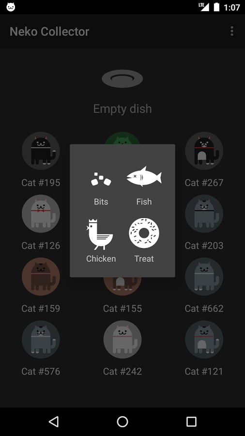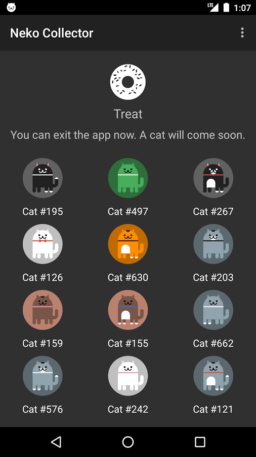 Каждый раз коты разные — их вид случайно генерируется. Все это реализовано и в игре Neko Collector, которая доступна на всех устройствах под управлением Android 4.0 и новее. Только миску с приманкой нельзя поставить в верхнюю «шторку» быстрых действий из-за ограничения старых версий Android. А вот поимка котов через уведомления здесь присутствует. Случайная генерация котов тоже реализована — осталось только собрать как можно больше «материальных» кошек. Скачать игру Neko Collector для Android можно на Трешбоксе.
