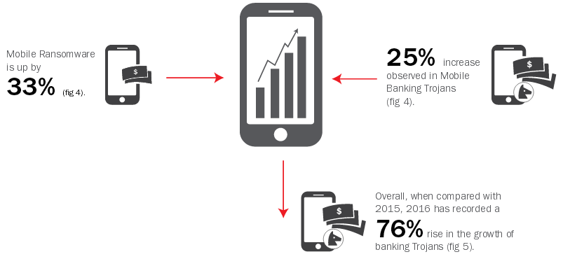 А вот количество банковских троянов увеличилось на 76%. Как отмечают эксперты из Quick Heal Technologies, злоумышленники в основном атакуют устройства под управлением Android и Windows, которые ежедневно используются финансовыми организациями для совершения бизнес-операций.