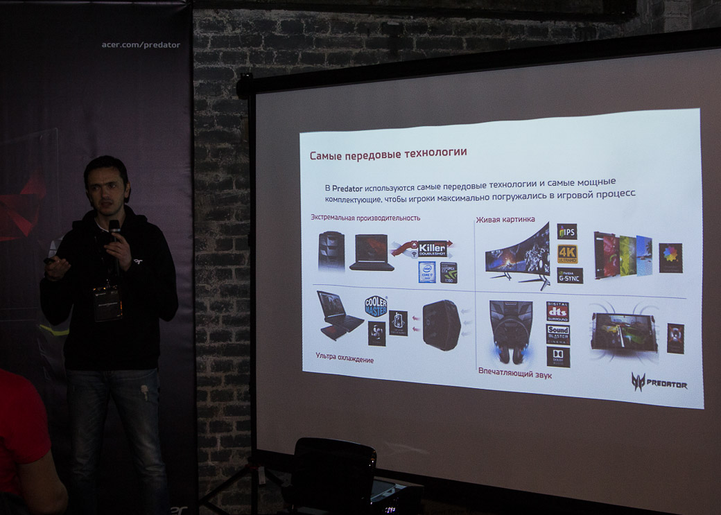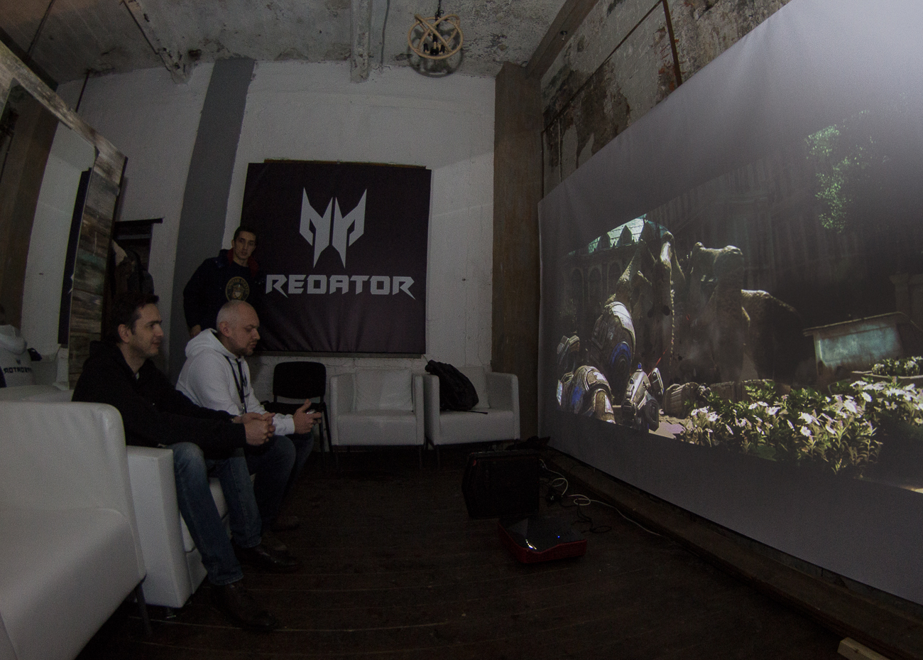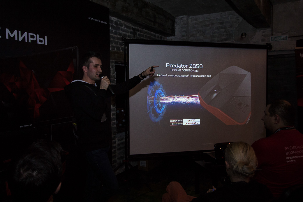 В рамках презентации компания Acer показала не только заявленные устройства, но и другие актуальные новинки геймерской серии. Мы высоко оценили Predator Z850 — первый игровой лазерный проектор, который способен проецировать яркое и чёткое изображение диагональю 120 дюймов на расстоянии менее 50-ти см. В отличие от обычных ламповых собратьев, их лазерному родичу не составит труда «обустроиться» даже в самом маленьком помещении, сфокусировавшись на кратчайшей дистанции.