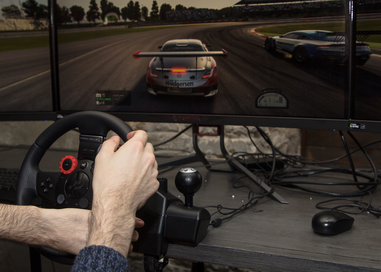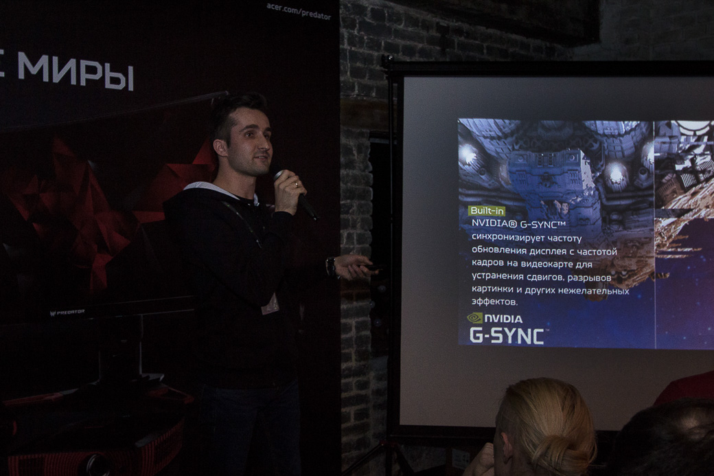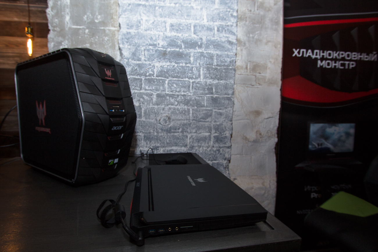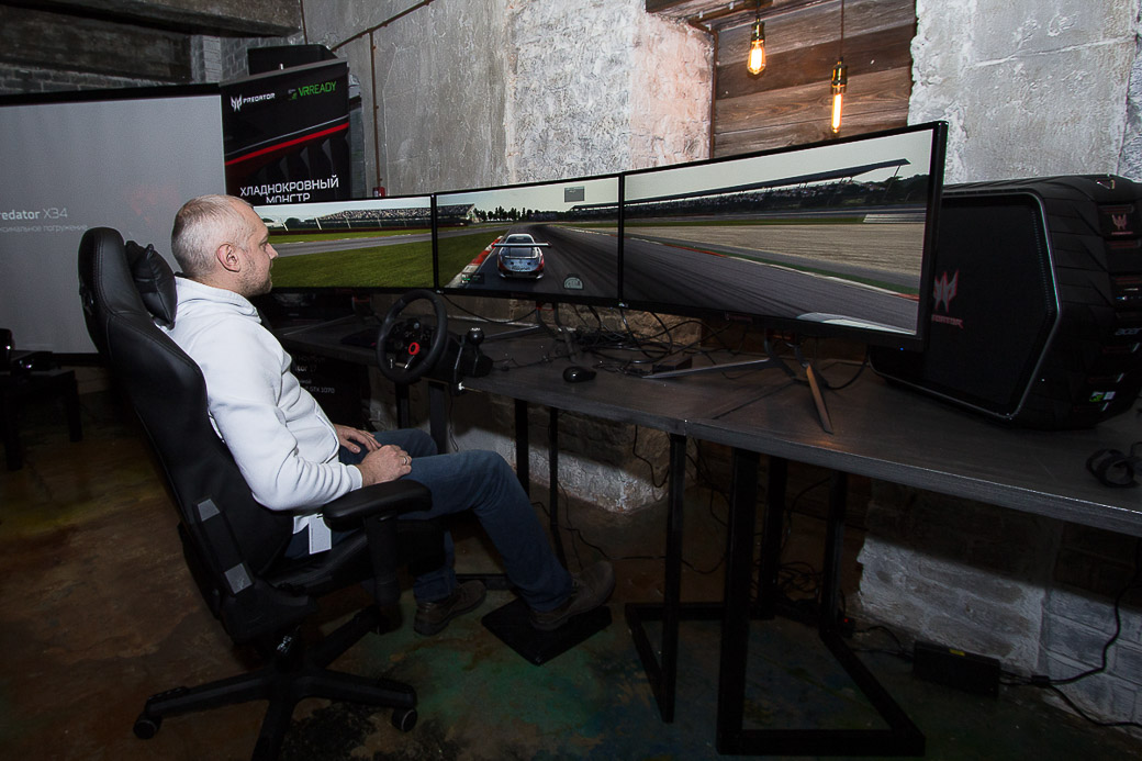 Мы высоко оценили связку из трёх Predator X34, сыграв в гонки с помощью специальной гарнитуры. Пару экрану составил бессменный десктоп G6, гордость бренда Predator.