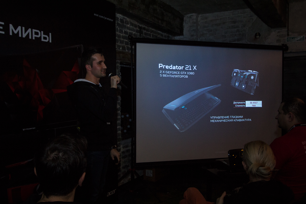 Пожалуй, Acer'у удалось нас заинтриговать: теперь мы ждём амбициозный релиз первого игрового ноутбука с изогнутым экраном. Обещают, что Predator 21 X, внушительная машина класса DTR (desktop replacement) на микропроцессорах Intel Core поколения Kaby Lake, связкой из двух NVIDIA GeForce GTX 1080 и механической клавиатурой, совсем скоро доберётся до России.