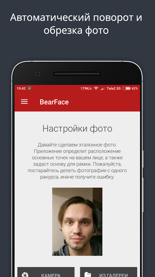 ** Пожалуйста, убедитесь, что ваши снимки хотя бы примерно сделаны в одинаковом ракурсе. Добиваться 100% схожести необязательно, но для более качественных и точных результатов определения лиц на фото, лучше за этим следить. Постарайтесь делать снимки с одной дистанции (например, для селфи лучшим расстоянияем будет ваша неполностью вытянутая рука), размещая ваше лицо примерно посередине снимка. Таким образом вы получите более высокий процент от удачного добавления фотографий в приложение.