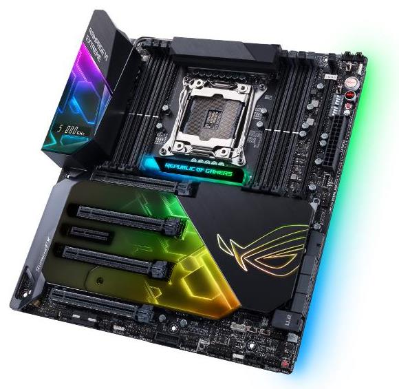 Под маркой ROG представлены три материнские платы: флагманская Rampage VI Extreme со встроенным OLED-дисплеем LiveDash для отображения данных датчиков мониторинга, Rampage VI Apex для любителей экстремального разгона с применением жидкого азота и гелия и Strix X299-E с гибкими настройками для широкого круга пользователей.